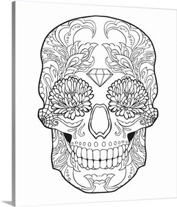 Mexican Skull Vector For Coloring Teschio Messicano Vettoriale Da Colorare Canvas Print Rosangelaincusci
