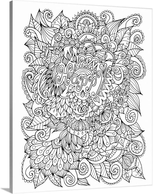 Amazon Com Diy Coloring Canvas Art Print Happy Doodle 24 X30 X1 25 Posters Prints