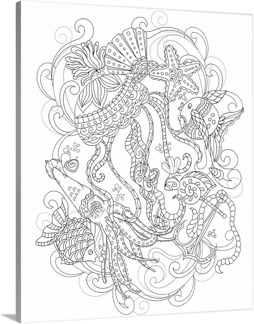Sea Life Animals And Fish Coloring Page Canvas Print Barewalls Posters Prints Bwc20772992